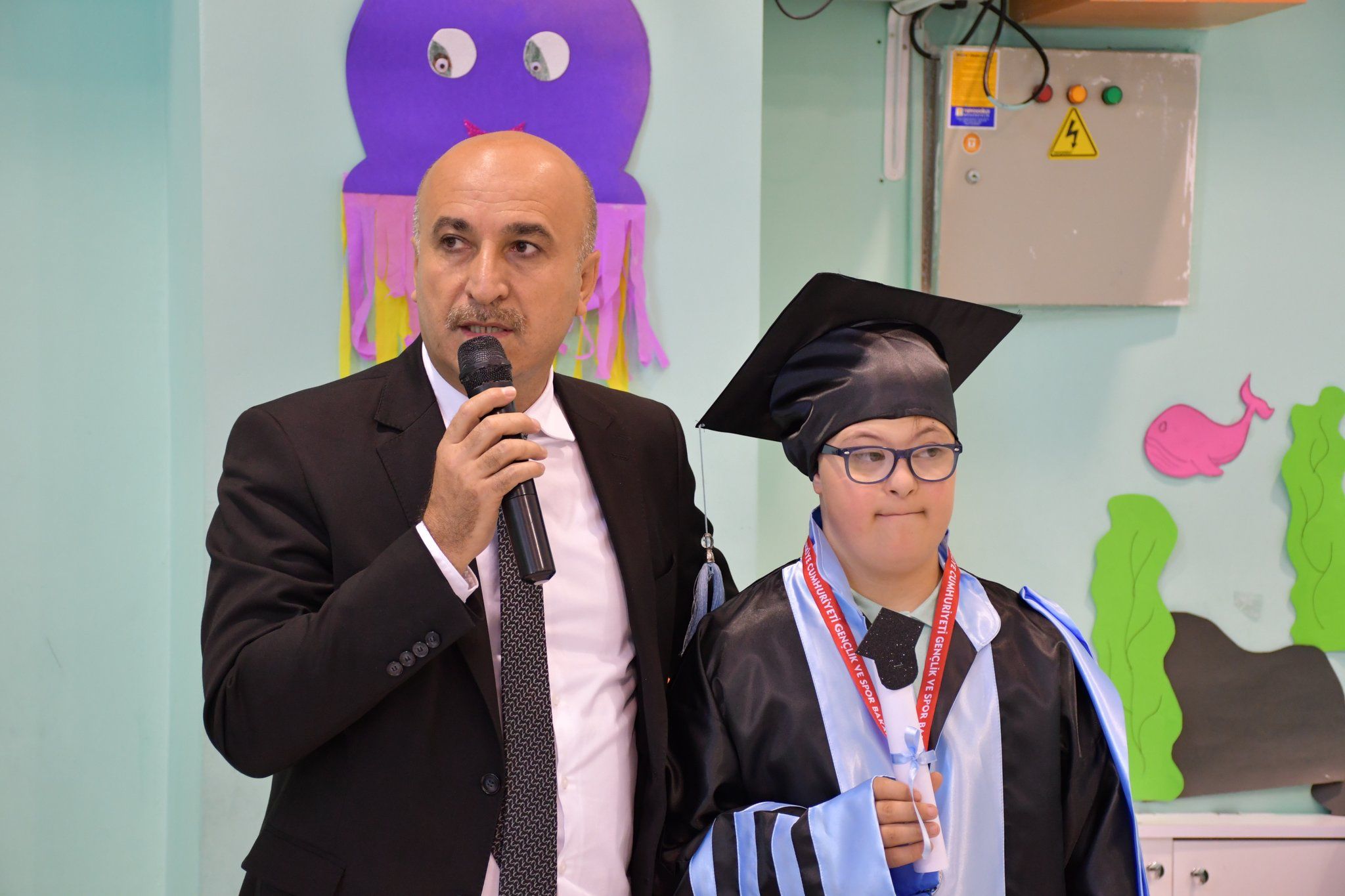 Nevşehir İl Milli Eğitim Müdürü Memet Polat, Gençlik ve Spor İl Müdürü Muhsin Özdemir ile birlikte Nevşehir Özel Eğitim Uygulama Merkezi II. Kademe öğretmen ve öğrencilerinin hazırlamış olduğu yıl sonu etkinliklerine ve mezuniyet törenine katıldı.