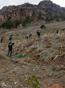 Hava şartlarının elverişli olduğu günlerde tüm ekipleri ile sahada görev yapan Park ve Bahçeler Müdürlüğü, Kahveci Dağı eteklerindeki fidan dikim çalışmalarını da sürdürüyor.