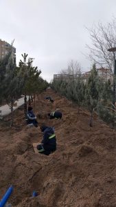 Ekipler ayrıca, Güzelyurt ve 15 Temmuz Mahallelerinde Vefa Küçük Caddesi ve Muhsin Yazıcıoğlu Bulvarı’nda yol kenarında bulunan ağaçların altına daha estetik bir görüntü kazanmaları ve bitkilerin zarar görmemesi için demir ızgara yapıyor.