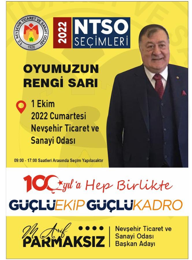 Nevşehir Ticaret ve Sanayi Odası Başkanı M. Arif PARMAKSIZ, 1 Ekim 2022 Cumartesi günü Oda Hizmet Binasın Zemin Katında yapılacak olan Oda Organ Seçimlerinde kullanacakları rengin “SARI” olduğunu belirterek şu açıklamalarda bulundu;