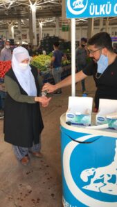 Ülkücü gençler gün içerisinde kapalı pazaryeri girişlerine açtıkları stantlarda vatandaşlara maske dağıtım ve kolonya ikramında bulundu. Oldukça takdir toplayan bu faaliyet gün boyu devam etti. Faaliyette vatandaşlara 5 bini aşkın maske dağıtıldı.