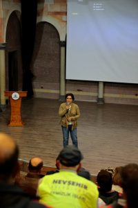 Demir, “Nevşehir’in ilk biyobozunur atık üretim projesi başlıyor. Bu proje ile birlikte bizim yaptığımız en önemli iş, topraktan geleni toprağa göndererek kompost üretiyoruz. Bu kompost tarımsal sulamayı üçte bire düşürüyor. Kimyasal gübre kullanımı beşte bire düşürüyor. Verimi ilk kullanan çiftçilerde yüzde 38 verim artışı sağlıyor. Erozyonu önlüyor tabii ki. 4 yıl düzenli olarak toprakta uygulandığı zaman da düzenli mikroklimayı değiştiriyor ve yağış düzeni sağlıyor.” dedi.