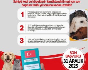 Yetkililer, hayvanların kimliklendirilmesi ve kayıt altına alınmasının hem sahipleri hem de sokak hayvanları için büyük önem taşıdığını vurgulayarak vatandaşları zamanında başvuru yapmaları konusunda uyardı.