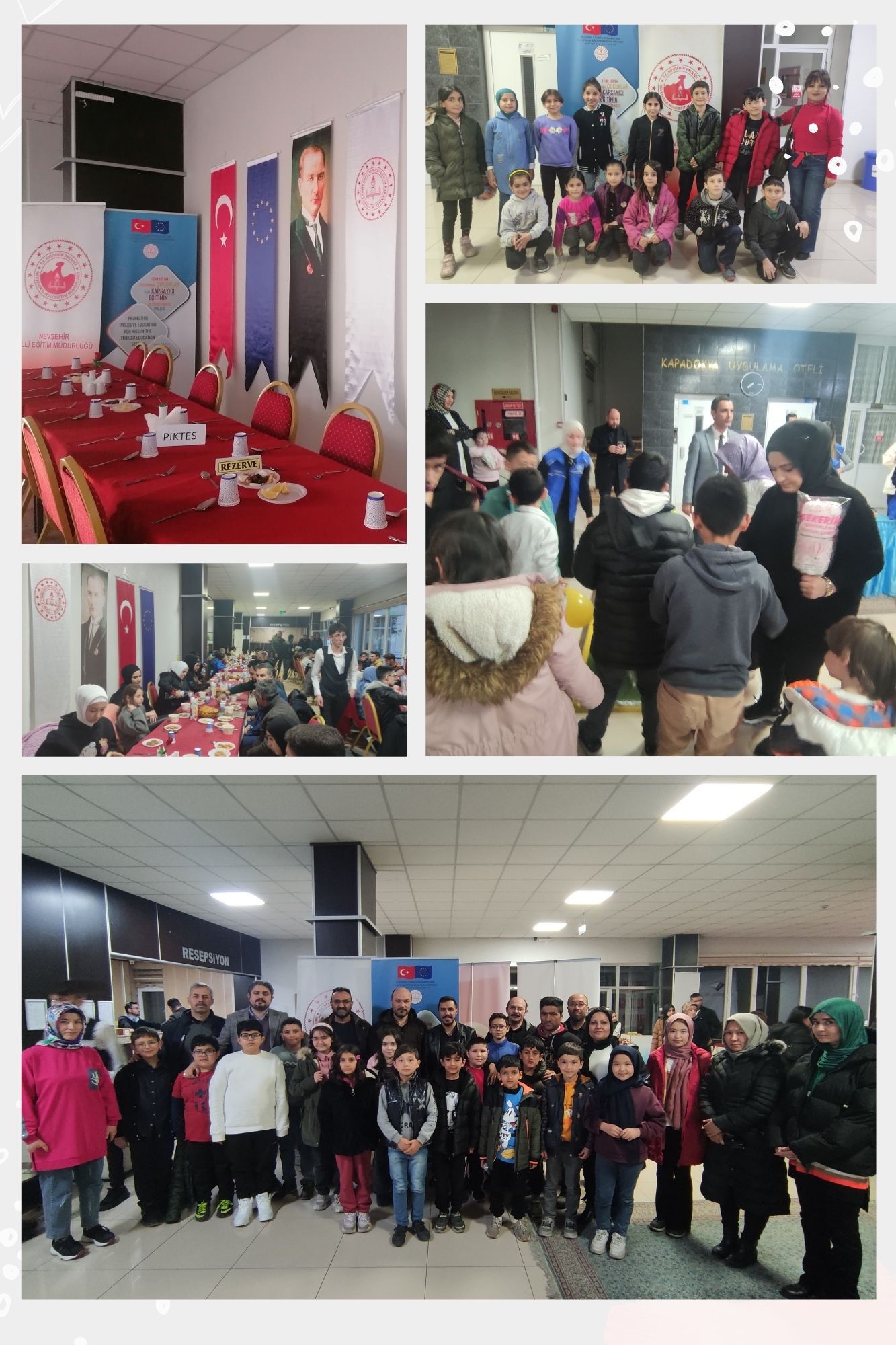 Avrupa Birliği finansman desteği ile Milli Eğitim Bakanlığı tarafından yürütülen Türk Eğitim Sisteminin Çocuklar İçin Kapsayıcı Eğitimin Desteklenmesi Projesi (PİKTES) tarafından Türk ve yabancı öğrenci ve ailelerine yönelik sosyal uyum faaliyetleri kapsamında Kapadokya Mesleki ve Teknik Anadolu Lisesi Uygulama Otelinde iftar programı düzenlendi.