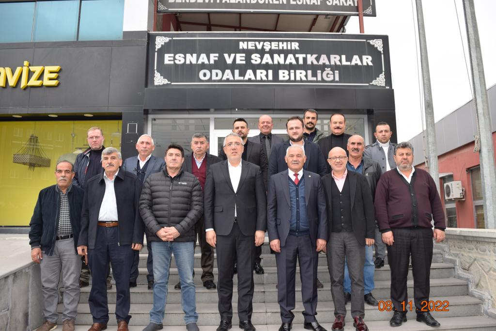 Nevşehir Esnaf ve Sanatkarlar Odaları Birliği(NEVESOB) Başkanı Mehmet Pınarbaşı daveti kapsamında Nevşehir Belediye Başkanı Mehmet Savran beraberinde Başkan Yardımcıları Mustafa Alevli, Furkan Feralan ,Nafiz Dirikoç ve Kredi Kefalet Kooperatifi Başkanı Erdoğan Korkutmaz ile Oda Başkanlarının katılımıyla istişare toplantısı düzenlendi.