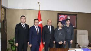 Nevşehir Merkez Anadolu Lisesi Müdürü Rüstem Acar, danışman öğretmen Ceyhun Bircan ve öğrencileri, İl Milli Eğitim Müdürü Memet Polat’ı makamında ziyaret ettiler.