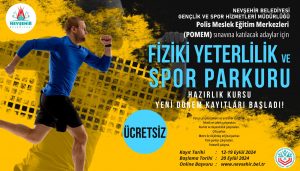 Nevşehir Belediyesi’nin, Polis Meslek Eğitim Merkezleri (POMEM), sınavlarına katılacak adaylara yönelik açacağı ücretsiz ‘Fiziki Yeterlilik ve Spor Parkuru’ kursu için kayıtlar başladı.