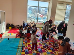 Afet bölgelerinden ilimize gelen geleceğimizin teminatı çocuklarımızın moral ve motivasyonu için okul öncesi öğretmenlerimiz çalışmaya devam ediyorlar.