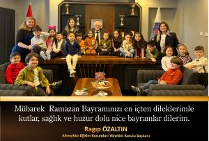 Altınyıldız Eğitim Kurumları Yönetim Kurulu Başkanı Ragıp Özaltın, mübarek Ramazan ayını geride bırakarak, bir Ramazan Bayramı’na daha erişmenin mutluluğunu yaşadıklarını söyledi.
