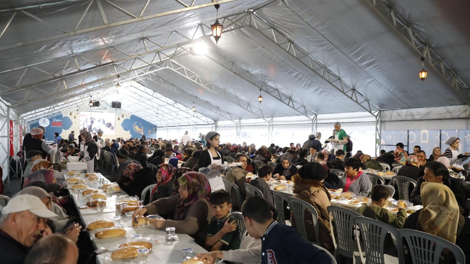 Nevşehir Belediyesi ve hayırseverlerin katkılarıyla düzenlenen Gönül Sofrası organizasyonunda binlerce kişilik iftar sofraları kurulurken iftar çadırı her kesimden insanı ağırlamaya devam ediyor.