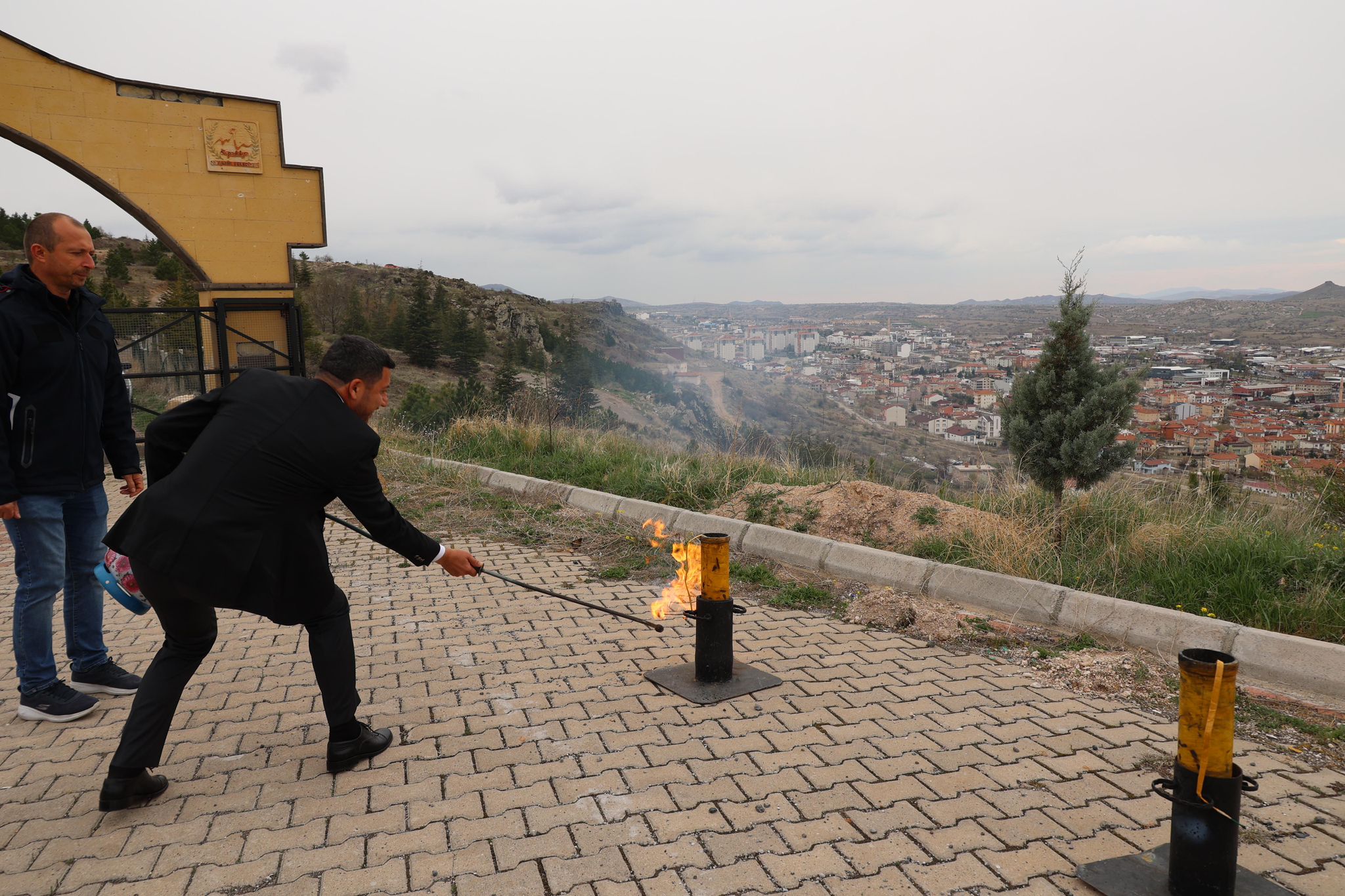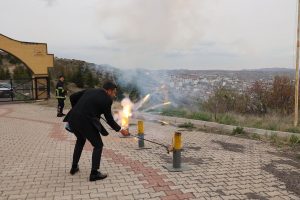 İtfaiye Müdürlüğü tarafından Kahveci Dağı’ndaki Kent Ormanı yakınlarında gerçekleştirilen top atışına Belediye Başkanı Rasim Arı’da katıldı.