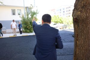 Saha çalışmaları kapsamında Güzelyurt Mahallesi Hisar Sokak’da asfalt serim çalışmalarını yerinde inceleyen Başkan Arı, devamında Cevher Dudayev Mahallesi Vatan Caddesi’nin alt yapı ve üst yapı çalışmaları için düzenlenen kilitli taş söküm programına katıldı.
