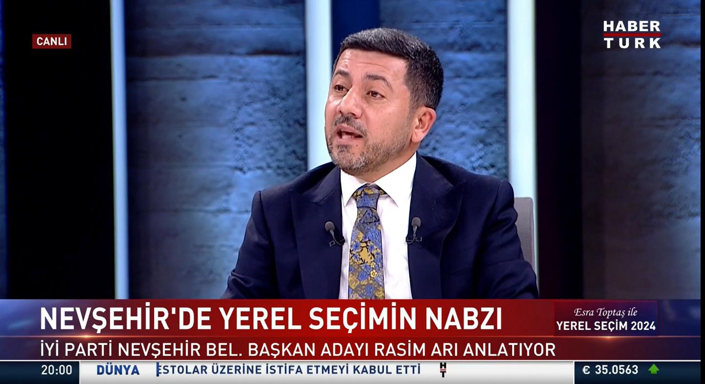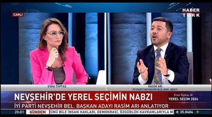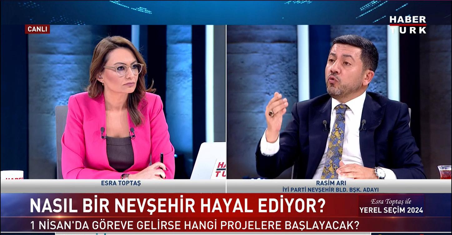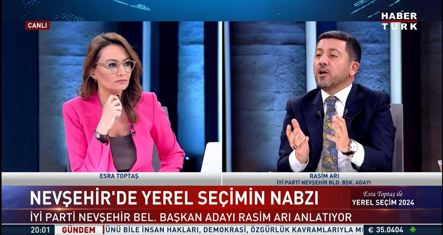 İYİ Parti Nevşehir Belediye Başkan Adayı Rasim Arı, Habertürk’te yayımlanan Esra Toptaş ile “Yerel Seçim 2024” programının konuğu oldu.