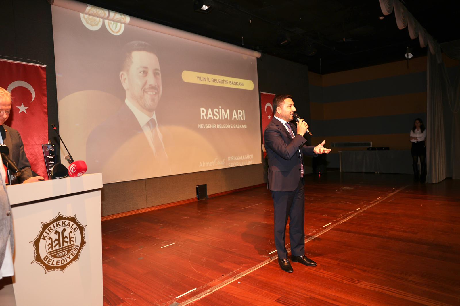 Yapılan konuşmaların ardından Nevşehir Belediye Başkanı Rasim Arı’ya “Yılın İl Belediye Başkanı” ödülü takdim edildi.