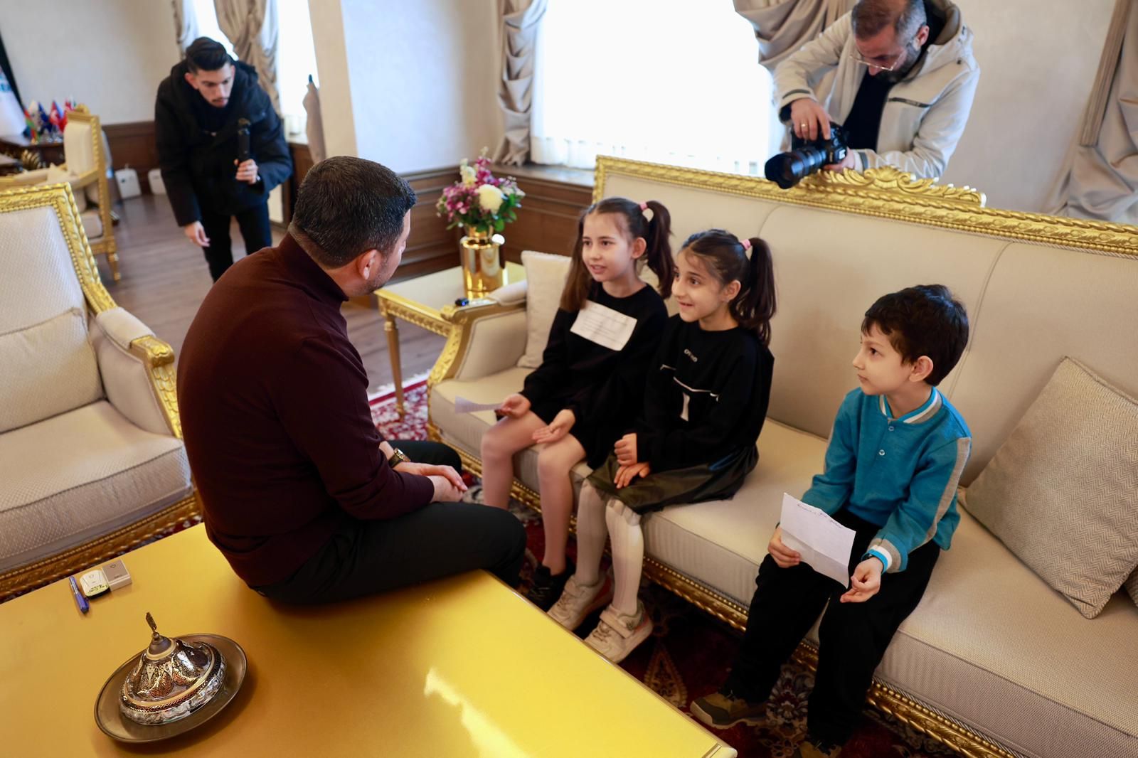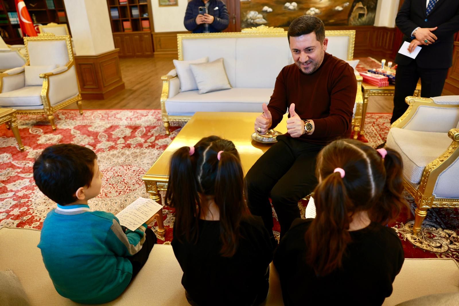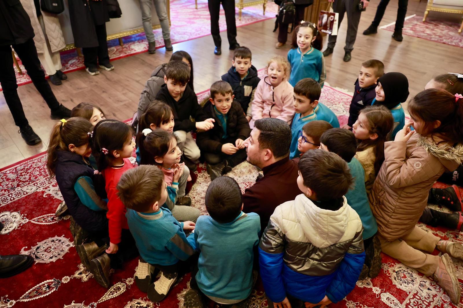 Minik misafirlerini makamında konuk eden Belediye Başkanı Rasim Arı, ilkokul 2. Sınıf öğrencilerinin yönelttiği sorulara cevap vererek çeşitli hediyeler verdi.