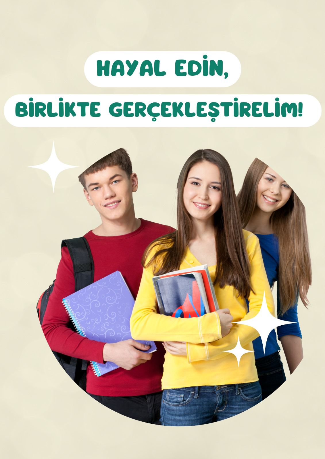 Hayal Edin, Birlikte Gerçekleştirelim Projesi 8. ve 12.sınıf öğrencilerimizin LGS ve YKS sınavlarına hazırlık sürecinde öğrencilerin kendilerini tanımalarına fırsat sunmak, bir üst öğrenim kurumlarını tanımalarını sağlamak, ilgi ve yeteneklerine uygun öğretim programı ve meslek seçmelerine yardımcı olmak amaçlanmıştır. Proje kapsamında; yapılan plan doğrultusunda 8. ve 12. sınıf öğrencilerimiz ile rehber/şube öğretmenlerimiz bireysel öğrenci görüşmeleri gerçekleştireceklerdir. Böylelikle öğrencilerin sınav sürecini sağlıklı atlatabilmelerine rehber öğretmenlerimizin desteği ile katkı sunulacaktır.