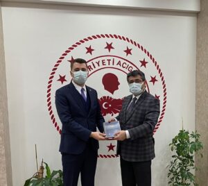 Nevşehir Hacı Bektaş Veli Üniversitesi (NEVÜ) Rektörü Prof. Dr. Semih Aktekin beraberinde Rektör Yardımcısı Prof. Dr. Mustafa Hilmi Çolakoğlu ile birlikte Nevşehir’in Acıgöl İlçe Kaymakamı Doğukan Koyuncu ve İlçe Belediye Başkanı Ercan Ertaş’ı ziyaret etti.