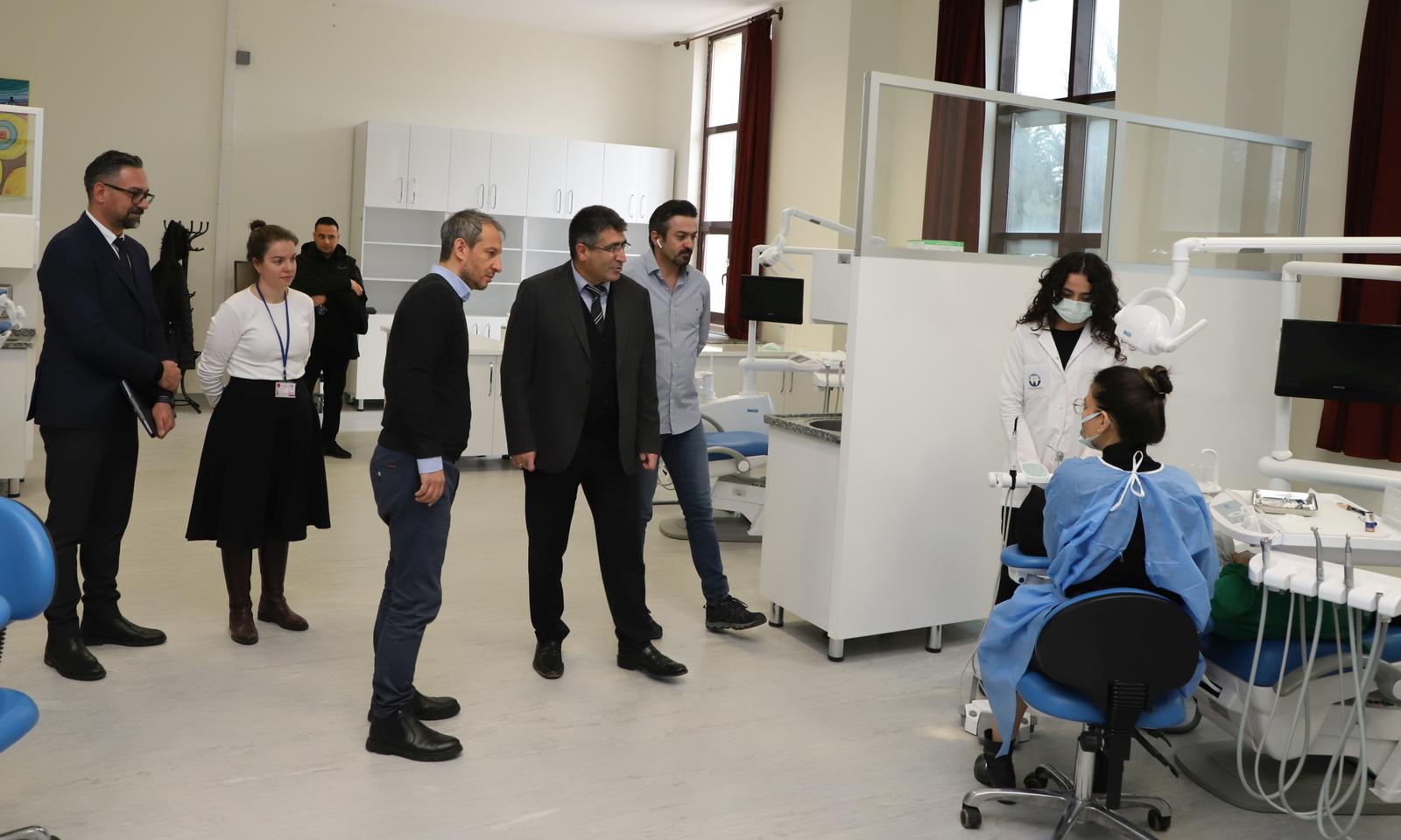 Merkezde tedavi hizmeti alan hastalarla da sohbet eden Rektör Prof. Dr. Semih Aktekin, yapımı devam eden Diş Hekimliği Fakültesi ve Hastane binasının tamamlanması ile birlikte vatandaşlara sunulan ağız ve diş sağlığı tedavisi hizmetlerinin kalitesini nitelik ve nicelik olarak yükseltmeyi hedeflediklerini söyledi.