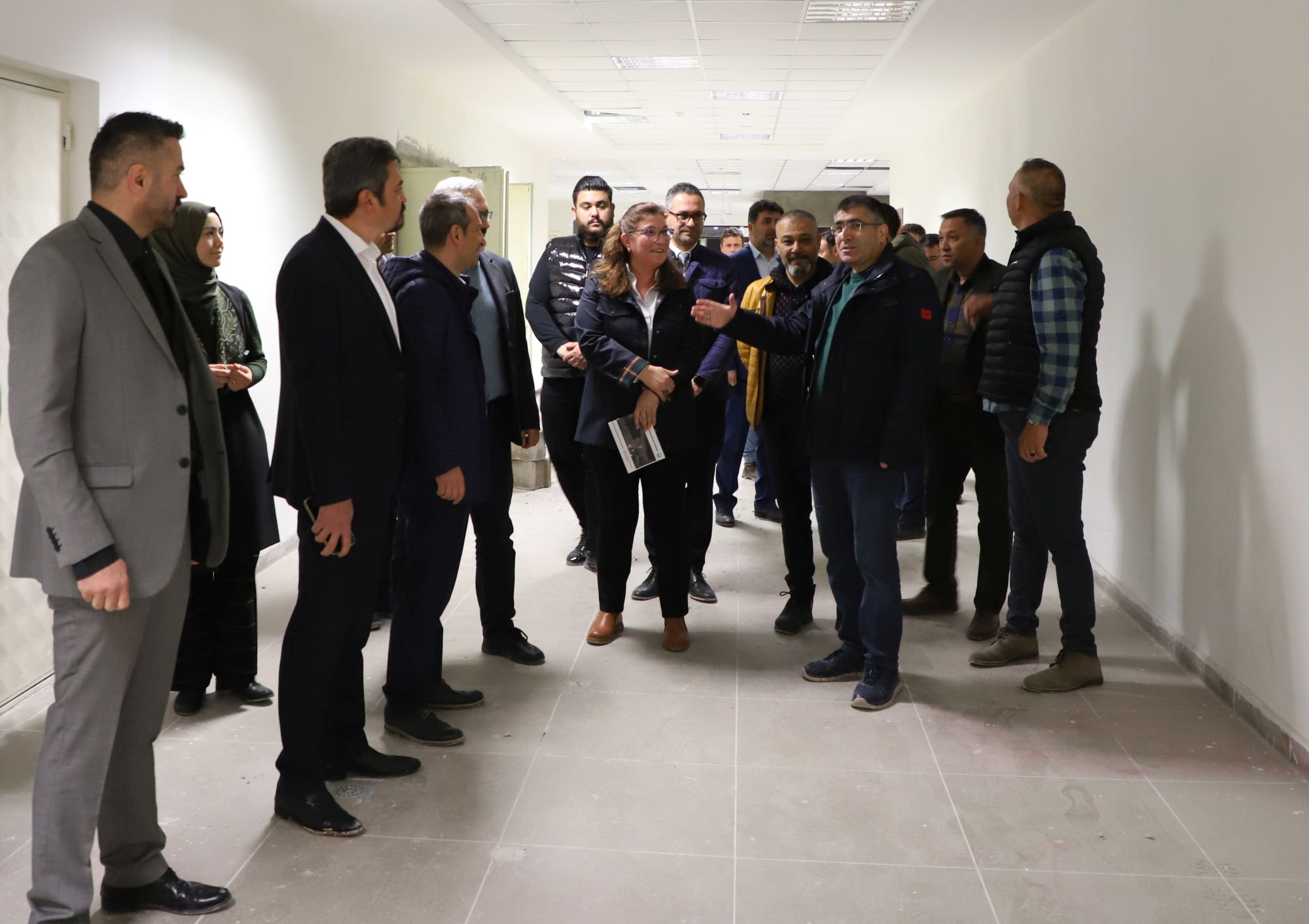 NEVÜ Diş Hekimliği Fakültesi ve Uygulama Hastanesi binası inşaatı ile Ağız ve Diş Sağlığı Uygulama ve Araştırma Merkezi dönüşüm binalarında incelemelerde bulunan Rektör Prof. Dr. Semih Aktekin, yürütülen çalışmalar hakkında Diş Hekimliği Fakültesi Dekanı Prof. Dr. Bayram Deviren ve firma yetkililerinden bilgi aldı.