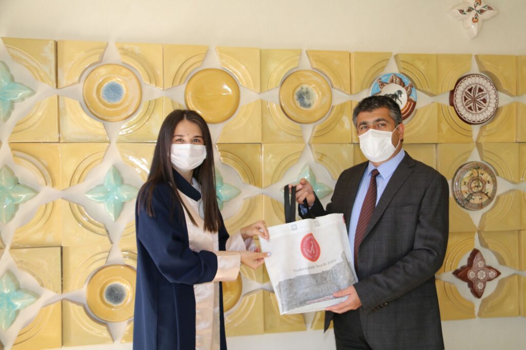 Nevşehir Hacı Bektaş Veli Üniversitesi (NEVÜ) Rektörü Prof. Dr. Semih Aktekin, mezuniyet hatırası için üniversite kampüsüne gelen öğrencileri makamına davet etti.