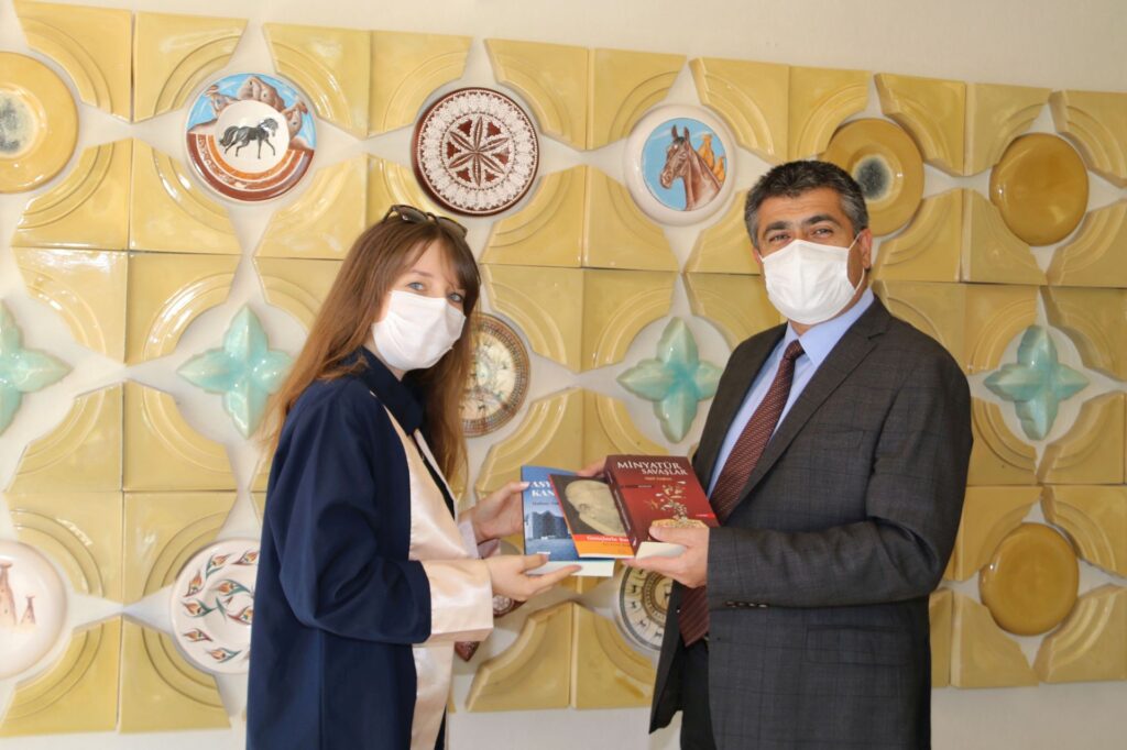 Öğrenciler ile bir süre sohbet eden Rektör Aktekin ayrıca öğrencilere, boş zamanlarını okuyarak değerlendirmeleri amacıyla değişik yayınlarda oluşan kitap hediye etti.