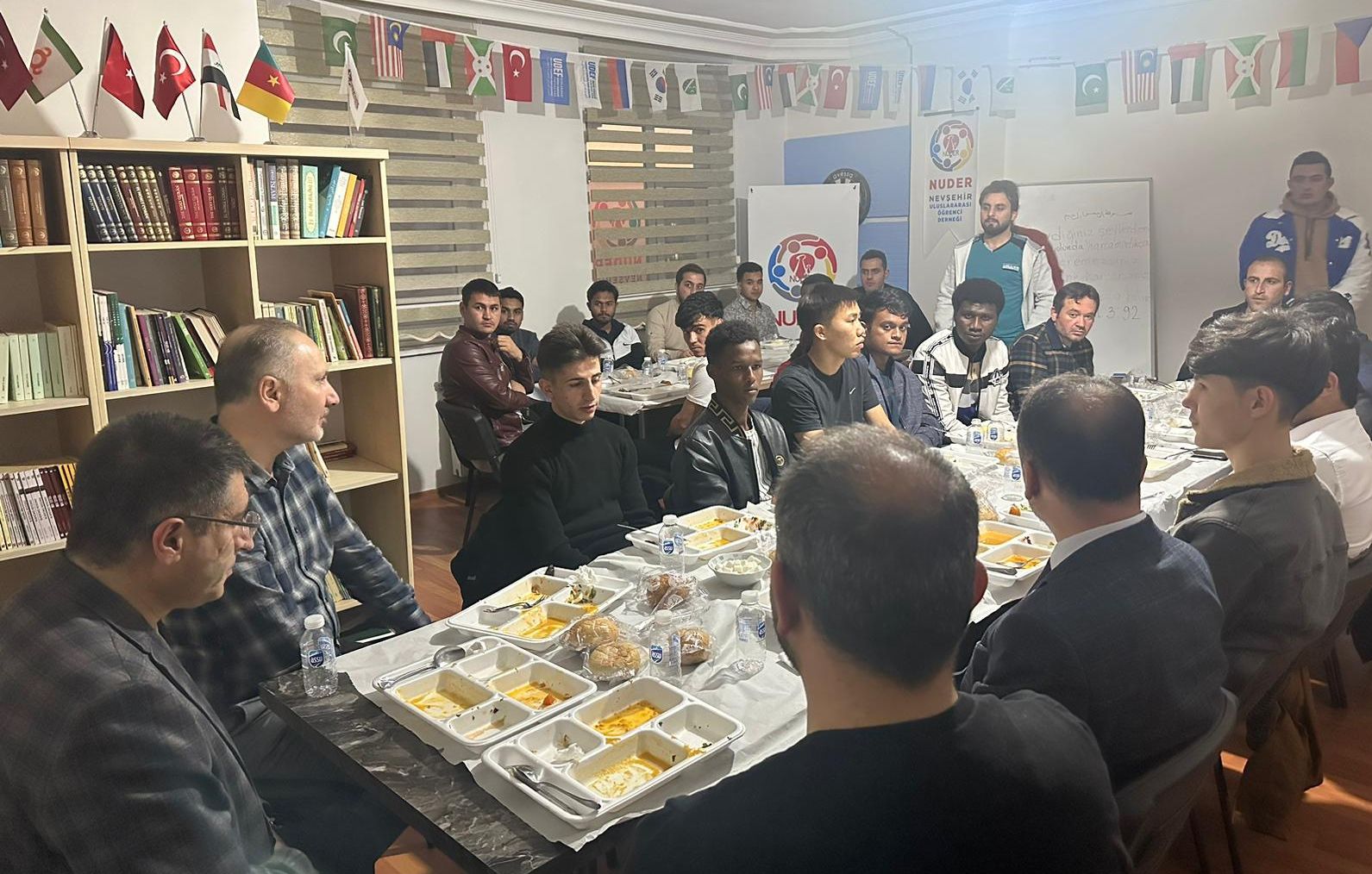 Nevşehir Uluslararası Öğrenci Derneği (NUDER) tarafından Nevşehir Hacı Bektaş Veli Üniversitesi (NEVÜ)’de eğitim gören uluslararası öğrenciler için iftar programı düzenlendi. Programa; Nevşehir Hacı Bektaş Veli Üniversitesi (NEVÜ) Rektörü Prof. Dr. Semih Aktekin, Nevşehir Uluslararası Öğrenci Derneği (NUDER) Başkanı Faruk Kahriman ve yönetim kurulu üyeleri, Türkçe ve Yabancı Dil Öğretimi Uygulama ve Araştırma Merkezi (NEVÜ TÖMER) Müdürü Doç. Dr. Ramazan Şimşek, NEVÜ’de eğitim gören uluslararası öğrenciler katıldı.