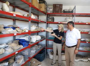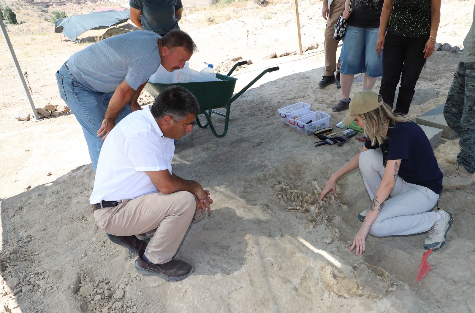 Rektör Aktekin’e ziyaretlerinde kazı başkanlığını yürüten Ankara Hacı Bayram Veli Üniversitesi Antropoloji Bölüm Başkanı Prof. Dr. Okşan Başoğlu ve kazı ekibi eşlik ederek kazı sahasında yürütülen çalışmalar hakkında kendilerine bilgi verdi.