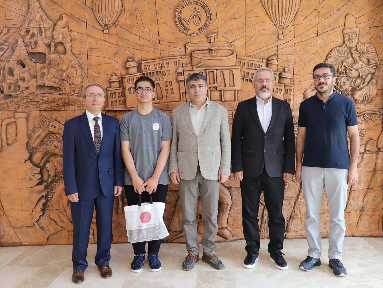 Nevşehir Hacı Bektaş Veli Üniversitesi (NEVÜ) Rektörü Prof. Dr. Semih Aktekin, ‘Uluslararası Astronomi Kongresi’ne Türkiye’den tek davetli öğrenci olarak kabul edilen Nevşehir Hacı Avni İncekara Fen Lisesi öğrencisi Bilal Sayın’ı tebrik etti.