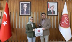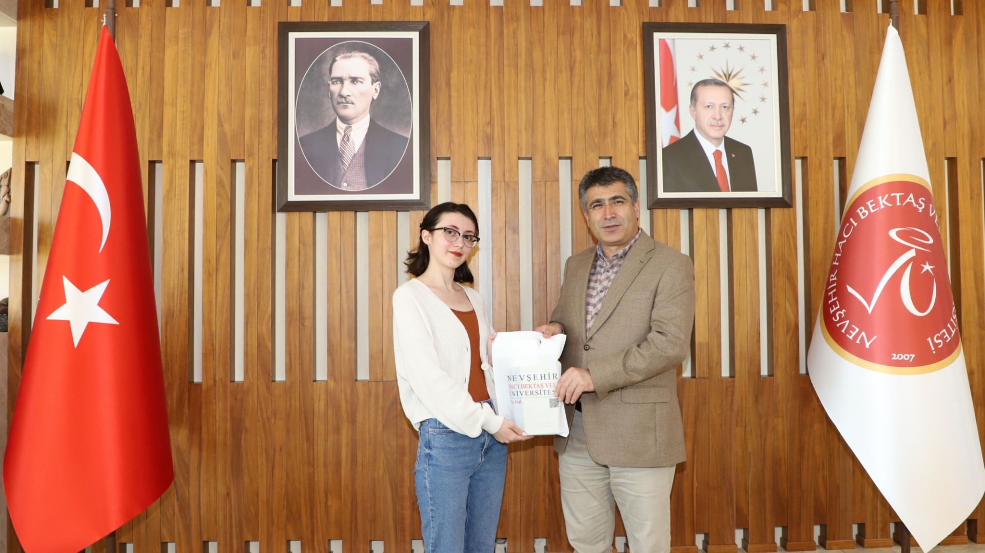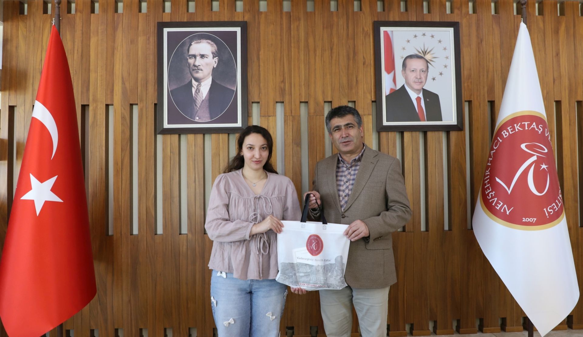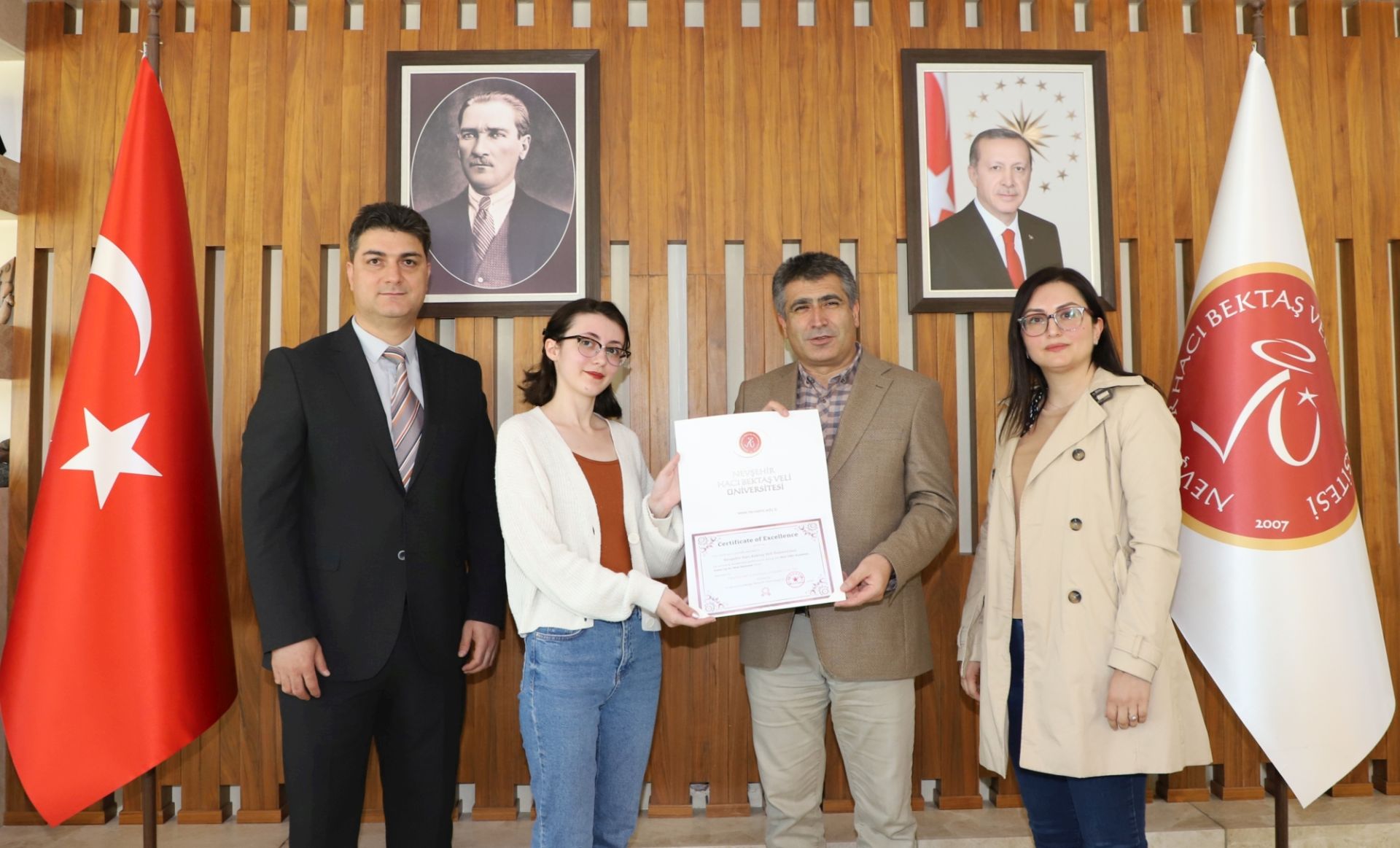 NEVÜ Rektörü Prof. Dr. Semih Aktekin, üniversitenin Hoca Ahmed Yesevi Kütüphanesi’nden en çok ödünç kitap alan ve okuyarak birinci olan Eğitim Fakültesi Fen Bilgisi Öğretmenliği 3. sınıf öğrencisi Zeynep Yılmaz, ikinci olan Eğitim Fakültesi Okul Öncesi Öğretmenliği 3. sınıf öğrencisi Aslıhan Keçeli ve üçüncü olan Fen Edebiyat Fakültesi Psikoloji Bölümü 3. sınıf öğrencisi Sema Nurgül Öztürk ile; Pekin merkezli Tongfang Knowledge Network Technology Co., Ltd. tarafından Çin Veri Tabanı’nı (CNKI) en çok kullanan öğrenci seçilerek “Mükemmeliyetçilik Ödülü” alan ve Doğu Dilleri Kütüphanesi’nden en fazla Çince kitap ödünç alan Çin Dili ve Edebiyatı 4. sınıf öğrencisi İrem Erdoğan’ı makamında kabul etti.