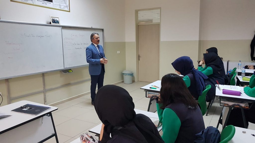 Protokol gereği Din Öğretimi Genel Müdürlüğü tarafından yürütülen ADEP (Akademik Destek Programı) çerçevesinde Nevşehir Recep Tayyip Erdoğan Fen ve Sosyal Bilimler Proje Anadolu İmam Hatip Lisesi 11. Sınıf öğrencilerine Felsefe dersini Nevşehir Hacı Bektaş Veli Üniversitesi Rektörü Prof. Dr. Mazhar Bağlı verdi