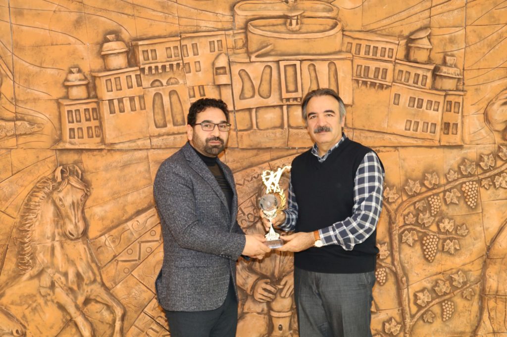Rektör Bağlı ile bir süre görüşerek müzenin çalışmaları hakkında bilgi veren Doç. Dr. Adem Öger, ziyaret sonunda “Maddi Folklor Ürünlerini Derleme ve Yaşatma Ödülü” nü Rektör Bağlı’ya takdim etti.