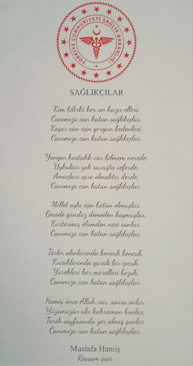 Sanat yaşamı boyunca halk edebiyatına katkıları nedeniyle Kültür ve Turizm Bakanlığı tarafından “halk şairi” unvanına layık görülmüştür. Ziyaret sırasında Hamiş, sağlık çalışanlarının gösterdiği özveri ve fedakarlığa dikkat çekerken, onlara ithaf ettiği bu özel şiirini Tartar’a sunarak, toplumun sağlık hizmetlerine duyduğu güveni ve sevgiyi dile getirdi.