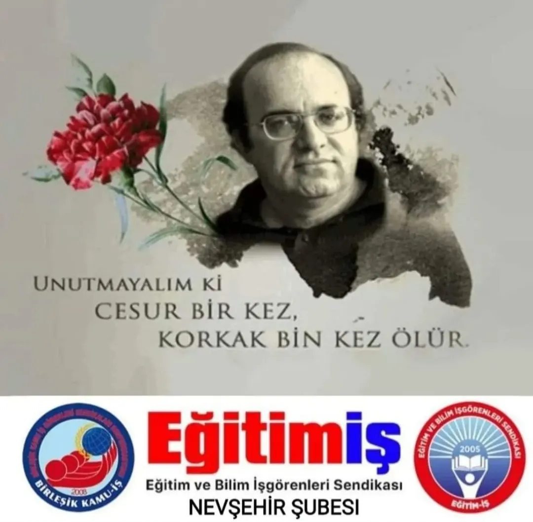 Eğitim-İş Nevşehir Şube Başkanı İbrahim Demir, ölüm yıldönümünde Gazeteci – Yazar Uğur Mumcu’yu andı,