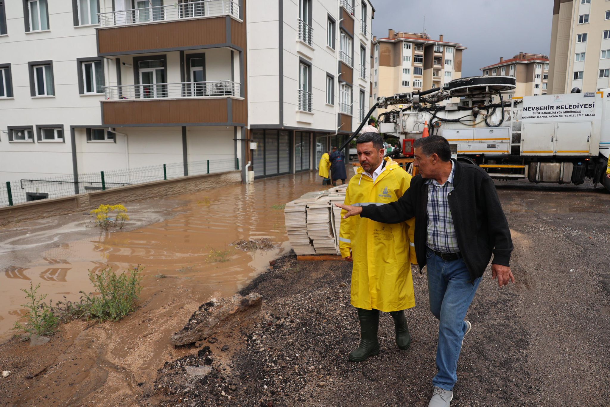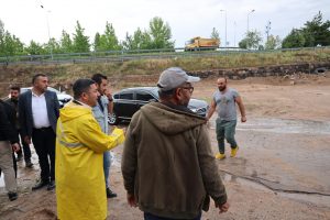 Nevşehir Belediye Başkanı Rasim Arı’da, sağanak yağmur süresince görev yapan belediye ekiplerinin çalışmalarını sahada koordine etti. Beraberinde başkan yardımcısı Ahmet Çöler ile birlikte Mehmet Akif Ersoy Mahallesi ve 20 Temmuz Mahallesi’nde incelemelerde bulunan Arı, yürütülen çalışmalar hakkında bilgi aldı.