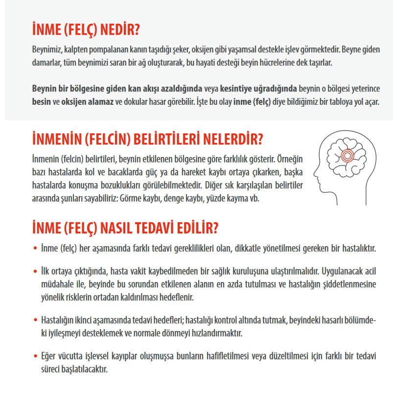 “Beyin damarlarında tıkanıklık ya da kanama nedeniyle beynin bir kısmına giden kan akışının kesilmesi veya azalması sonucu ortaya çıkan inme, önde gelen engellilik ve ölüm nedenlerinden biridir. Dünya genelinde; 25 yaş üzeri her 4 kişiden 1’inin hayatlarının herhangi bir döneminde inme ile karşı karşıya kalacağı öngörülmekte, her yıl yaklaşık 12 milyon kişiye ilk kez inme tanısı konmakta ve yılda 7 milyon kişi inme nedeni ile kaybedilmektedir.