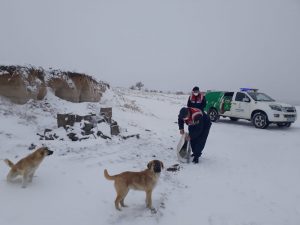Jandarma Çevre, Doğa ve Hayvanları Koruma Timi tarafından, soğuk hava ve kar yağışı nedeniyle yiyecek bulmakta zorlanan sahipsiz sokak hayvanlarının sıklıkla bulunduğu alanlara ve araziye, mama ve su bırakılarak hayvanların beslenmesi sağlandı.