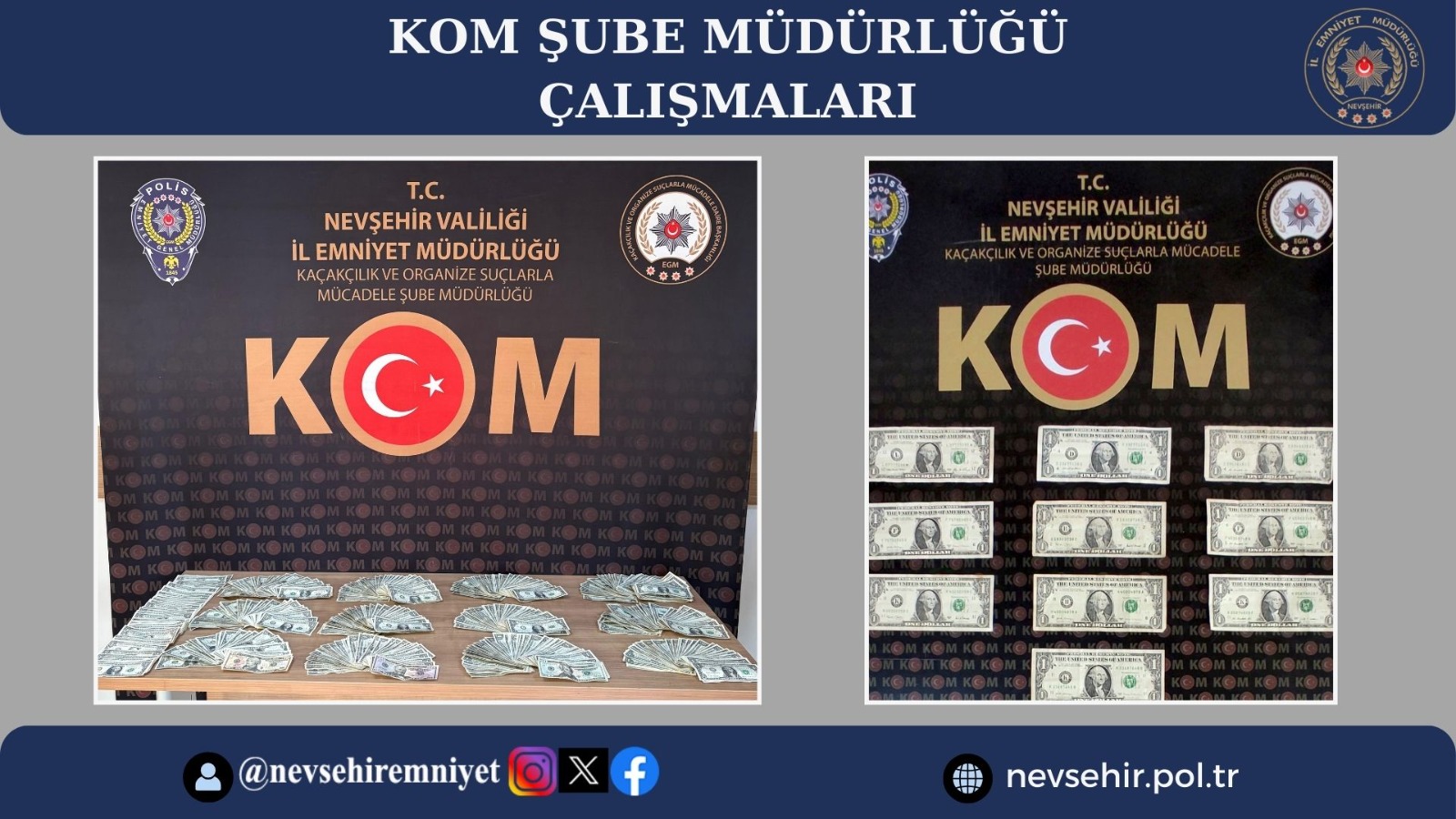 KOM Şube Müdürlüğü haftalık çalışmaları kapsamında sahte dolar ele geçirildi.