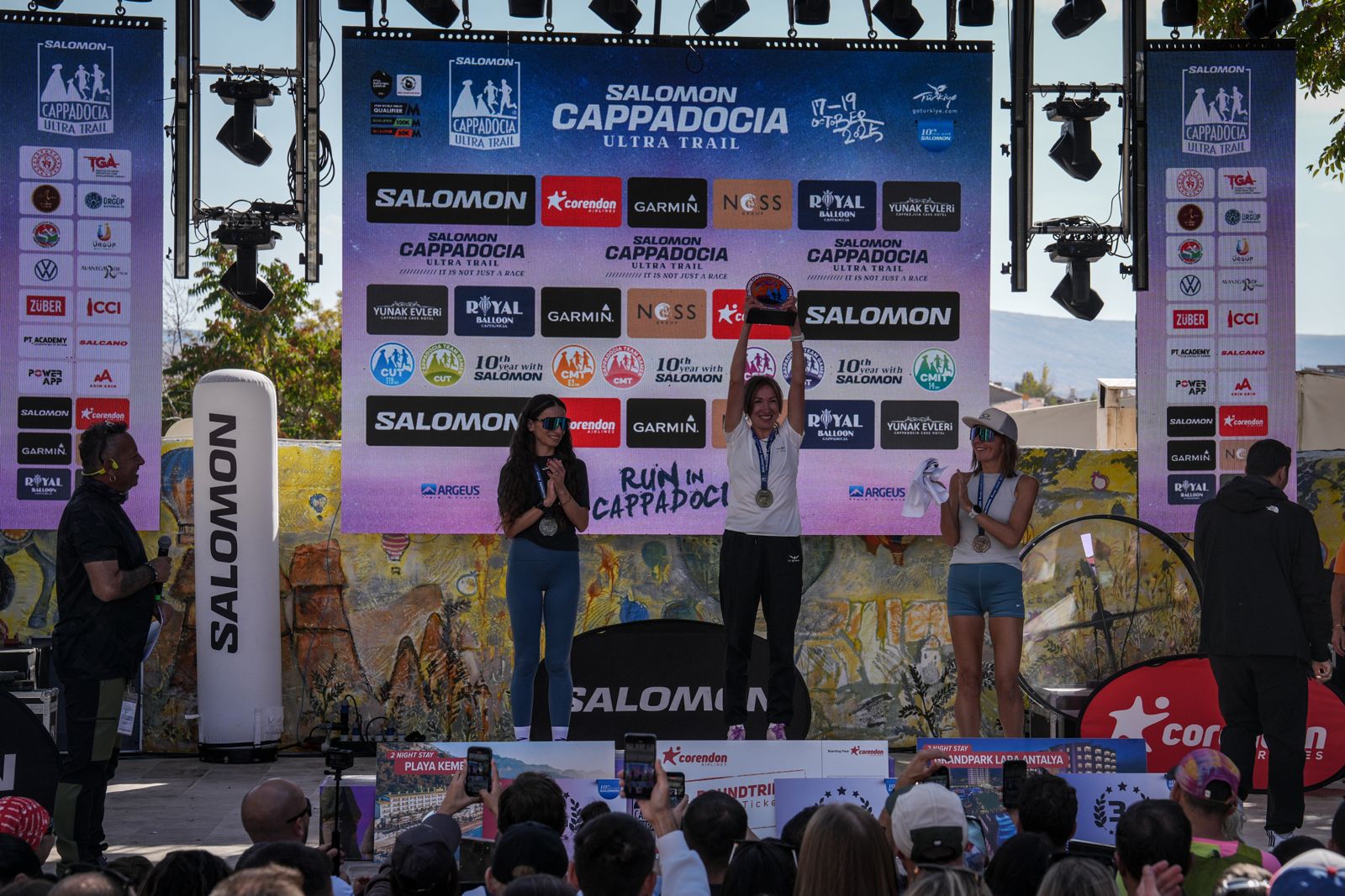 Salomon Cappadocia Ultra Trail’de derece elde eden sporcular düzenlenen törende ödüllerine kavuştu.  Törene; Nevşehir Vali Yardımcısı Mücahit Öztürk, Ürgüp Kaymakamı Ömer Coşkun, Ürgüp Belediye Başkanı Ali Ertuğrul Bul, Ürgüp İlçe Emniyet Müdürü Mevlüt Tüylü, Nevşehir İl Gençlik Spor Müdürü Mustafa Hakan Keskin, Nevşehir Kültür ve Turizm İl Müdürü Arda Heb, Argeus Travel & Events Kurucu Ortağı Aydın Ayhan Güney, Salomon Türkiye Genel Müdürü Atilla Kuduoğlu, Salomon Türkiye Marka Direktörü Orçun Kutluad, Salomon Türkiye Pazarlama Müdürü Ebru Çil, Corendon Airlines Kurumsal İletişim ve Pazarlama Uzmanı Osman Tuğral, Garmin Türkiye Genel Müdürü Hasan Güder ve Türkiye Turizm Tanıtım ve Geliştirme Ajansı (TGA) Spor Pazarlama Müdürü Serhan Sarı katıldı.