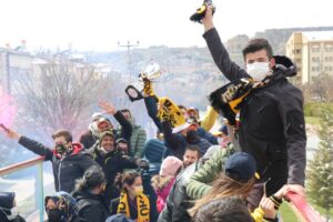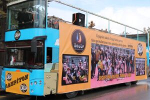 Ürgüp Spor’a özel olarak hazırlanan üstü açık otobüsle ilçe genelinde şampiyonluk turu atan sporculara; Ürgüp Kaymakamı Mehmet Maraşlı, Ürgüp Belediye Başkanı Mehmet Aktürk, MHP İl Başkanı İlhan Kaya, AK Parti İlçe Başkanı Oğuz Kahraman, MHP İlçe Başkanı Tevfik Öz ve CHP İlçe Başkanı Fulya Gülşen Altınsoy, Ürgüp Spor Yönetim Kurulu Başkanı Halis Aydoğan ile Ürgüp Spor oyuncuları ve taraftarları eşlik etti.