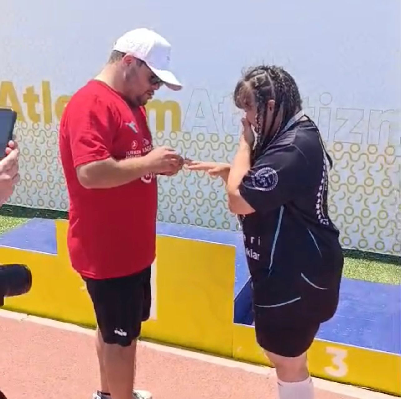 Özel Sporcular Türkiye Şampiyonası’nda anlamlı bir an yaşandı. Nevşehirli Down sendromlu milli sporcu Ramazan Ünlü, yarışmada altın madalya kazanan Kayserili milli sporcu Nisa Naz Öztürk’e evlilik teklifinde bulundu.