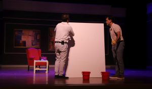 Üç arkadaşın boş, beyaz bir tablo üzerinden arkadaşlıklarını masaya yatırmalarının konu edinildiği tiyatro oyunu, tiyatro severler katılımcılar tarafından beğeniyle izlendi.