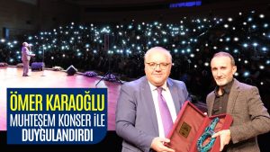 Konser programı sonunda Sanatçı Ömer Karaoğlu ve Rektör Prof. Dr. Semih Aktekin’e hediye takdim edildi.