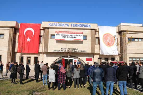 Bakan Varank Rektör Bağlı’yı ziyaretinin ardından beraberindeki heyet eşliğinde NEVÜ bünyesinde bulunan Kapadokya Teknopark’ın açılışına geçti.