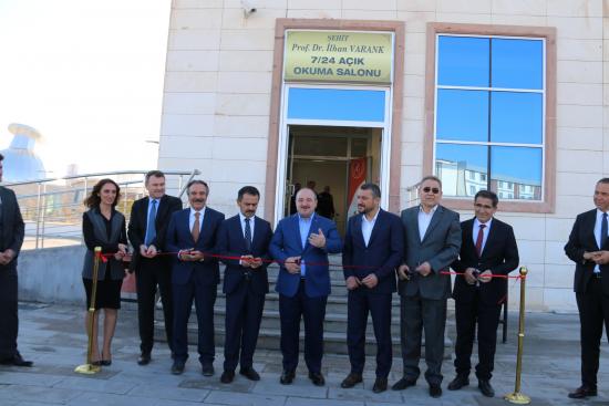 Bakan Varank, Kapadokya Teknopark’taki incelemelerinin ardından 15 Temmuz hain FETÖ darbe girişiminde şehit olan kardeşi Prof. Dr. İlhan Varank’ın isminin verildiği kütüphanenin ‘Şehit Prof. Dr. İlhan Varank 7/24 Açık Okuma Salonu’nun açılışını yaptı.