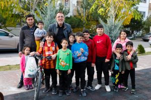 Savran, daha sonra mahalledeki çocuklarla buluşarak onlara hediye dağıttı.