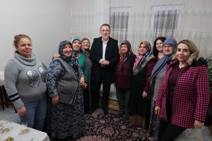 Seçimler öncesinde çalışmalarını yoğun bir şekilde sürdüren AK Parti Belediye Başkan Adayı Dr. Mehmet Savran, her akşam farklı mahallelerde ev ziyaretleri gerçekleştiriyor. Son olarak Esentepe Mahallesi’nde konuk olduğu Acer ailesine ait evde mahalle sakinleri ile bir araya gelen Savran, “Nevşehir’imize gönül vermiş kim varsa her birinin hizmetkârı olacağım. Yeni dönemde de bize inanan ve güvenenleri mahcup etmeden, emanetin hakkını vererek, hizmet ve eser üretmeye devam edeceğiz. Şehrimize olan sevdamızı, dün olduğu gibi yarında çalışarak göstereceğiz.” diye konuştu.