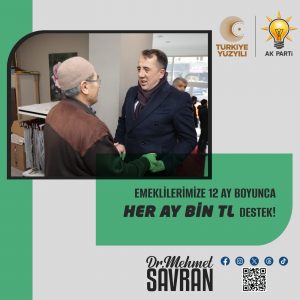 AK Parti Nevşehir Belediye Başkan Adayı Dr. Mehmet Savran, emeklilere 12 ay boyunca her ay düzenli olarak Bin TL destek sağlayacaklarını açıkladı.