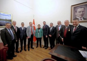 Sivas Şehit Aileleri ve Gaziler Dernek Başkanı Fatih Deveci, Yozgat, Nevşehir, Kırşehir, Kırıkkale, Aksaray, Niğde ve Çankırı illerinden oluşan İç Anadolu Bölgesi Şehit Aileleri ve Gaziler Dernek Başkanları Ankara’ya çıkarma yaptı. İlk olarak Aile ve Sosyal Hizmetler Bakanı Derya Yanık’ı makamında ziyaret eden heyet şehit aileleri ve gazilerin taleplerini iletti. Bakan Yanık ise ziyaretten duyduğu memnuniyeti dile getirerek, gerekli çalışmaların yapıldığını ve taleplere yönelik adımlar atılacağının müjdesini verdi. Dernek başkanları Bakan Yanık’ın yanı sıra AK Parti Grup Başkanı İsmet Yılmaz, AK Parti Sivas Milletvekili Semiha Ekinci ve diğer AK Parti ve MHP milletvekilleri ile tek tek görüşerek taleplerini iletti.