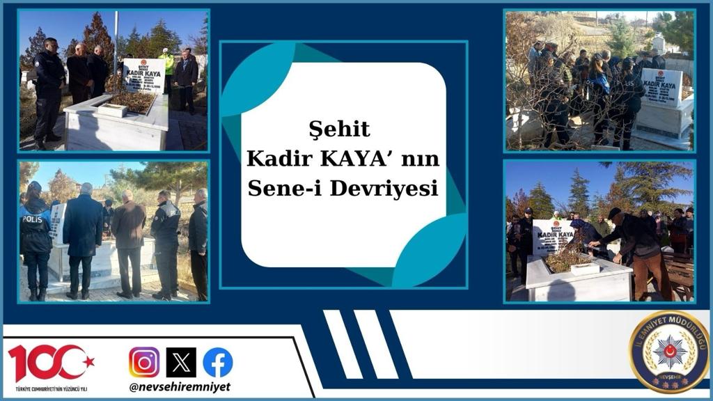 28.12.1990 günü görev esnasında geçirmiş olduğu trafik kazası sonucu şehit olan Çarşı Mahalle Bekçisi Kadir KAYA’ nın şehadetinin sene-i devriyesi sebebiyle anma töreni düzenlendi. Gülşehir ilçesi Gümüşkent köy mezarlığında bulunan kabri başında şehidin ailesi ve emniyet personelinin katılımıyla anma programı düzenlendi.
