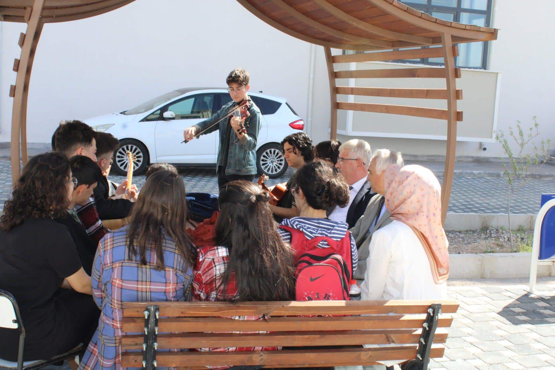 İl Milli Eğitim Müdürü Yusuf YAZICI; İnşaat Emlak Şube Müdürü Yusuf AYDOĞMUŞ eşliğinde Şehit Demet Sezen Güzel Sanatlar Lisesini ziyaret ederek Okul Müdürü Kemal YILMAZ’dan eğitim ve sanat çalışmaları hakkında bilgi aldı ve okul birimlerinde de incelemelerde bulundu. Öğrencilerle bir araya gelerek sohbet eden İl Müdürü ve Şube Müdürüne, öğrenciler kısa bir müzik dinletisi sundular. Daha sonra Sayın YAZICI, idareci ve öğretmenlerle öğretmenler odasında bir araya gelerek istek ve taleplerini aldı. İl Müdürü; güzel sanatlar lisesinin altyapısını güçlendirmek, eksikliklerini gidermek ve kalitesini daha da artırmak için çaba sarf edeceklerini ifade etti. İl Milli Eğitim Müdürü Yusuf YAZICI; sanat eğitiminin öğrencilerinin bilişsel, duygusal ve sosyal gelişimine katkı sağladığını, özgüvenini artırdığını, kendilerini ifade etme ve baskın yeteneklerini sergileme fırsatı sunduğunu belirtti. Ayrıca, sanat eğitiminin aynı zamanda öğrencilerin sosyal becerilerini ve iş birliği yeteneklerini de güçlendirdiğini dile getirerek öğrencilerin eğitimi için büyük bir özveri gösteren ve emek veren idareci ve öğretmenlere teşekkür etti.